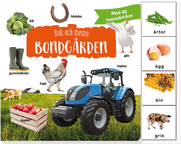 Ser du traktorn? Eller det söta lammet? I denna färgglada bilderbok får barnet lära sig vad som finns på bondgården. Med de medföljande memokorten är det roligt att öva på de nya orden.