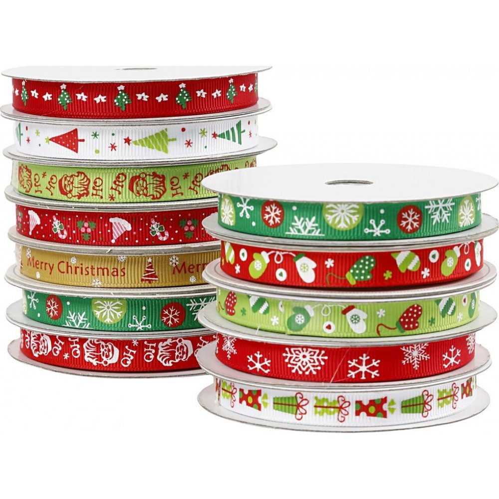 Dekorationsband i polyester med julmotiv. Idealisk till dekoration eller upphängningar. Enfärgad baksida.
