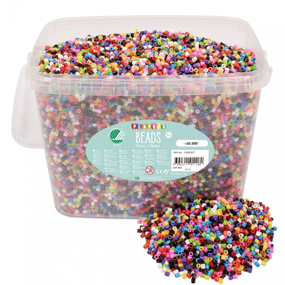 Stor burk med pärlor. Perfekt när man har några barn som gillar att pärla!