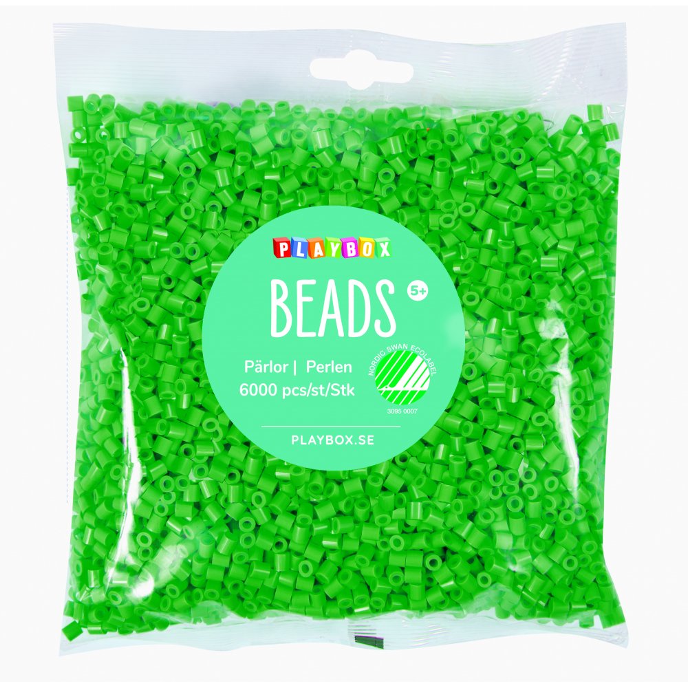 Påse med 6000 pärlor i grön färg.