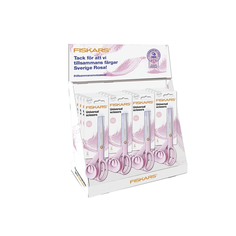 Fiskars hjälper till i kampen mot cancer. Köper du den här 17 cm långa universalsaxen vet du att du stödjer Cancerfonden. Saxen är precis som alla Fiskars saxar av utmärkt kvalitet och snygg, ergonomisk design. Med tanke på syftet med den här speciella saxen har den fått ett snyggt ljusrosa grepp. Perfekt till alla klipparbeten du behöver få gjort hemma.